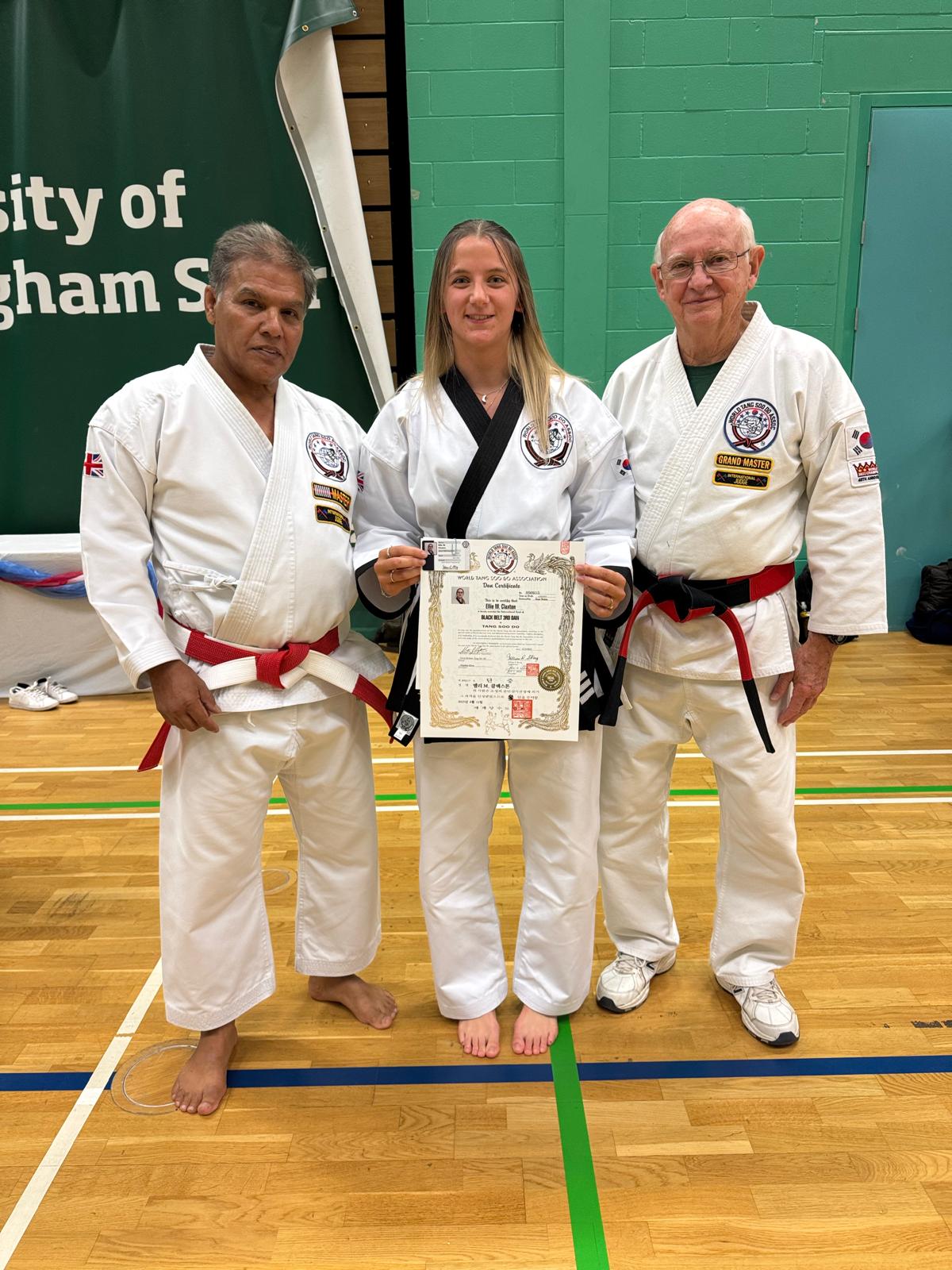 AT THE AGE OF 14 Miss claxton RECEIVED Her first dan BLACK BELT IN 2018, AND HAS PROGRESSED THROUGH THE RANKS REACHING 3rd DAN AS OF 2025.